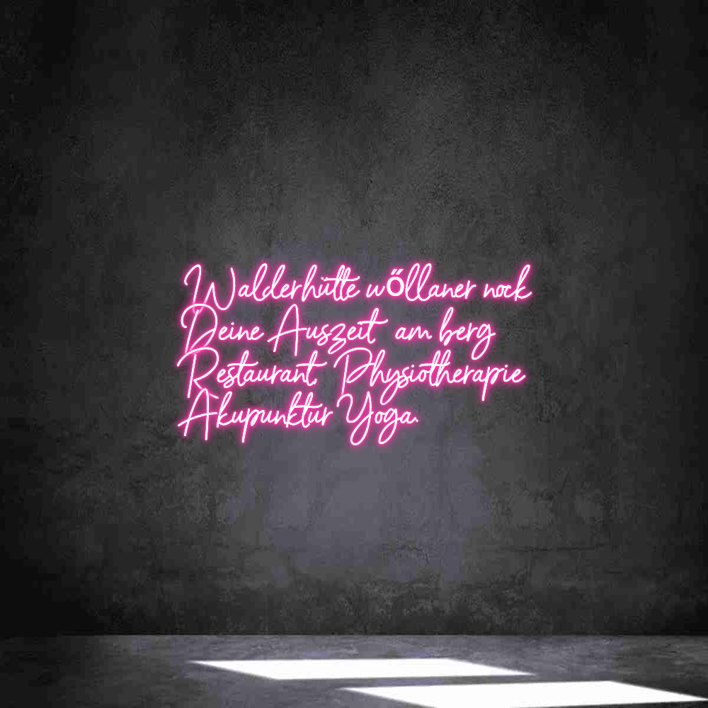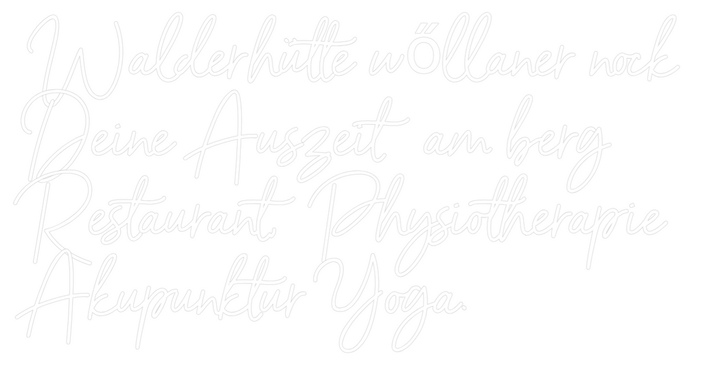 Text: Walderhütte wőllaner nock Deine Auszeit am berg Restaurant, Physiotherapie Akupunktur Yoga.
